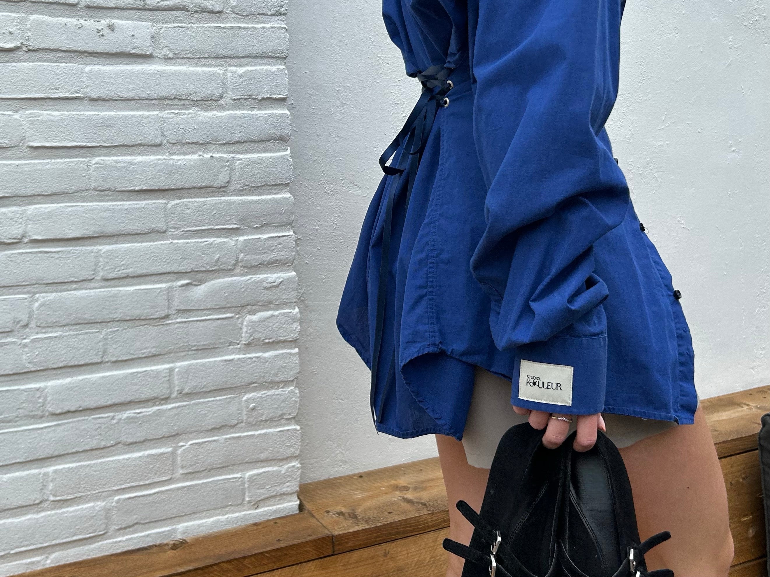 Reworked Blouse With An Adjustable Tight Waist Light Blue