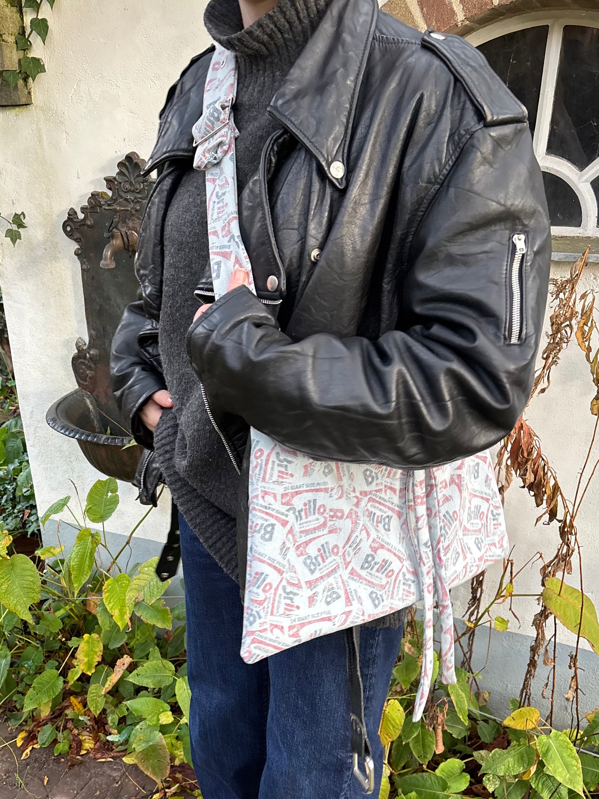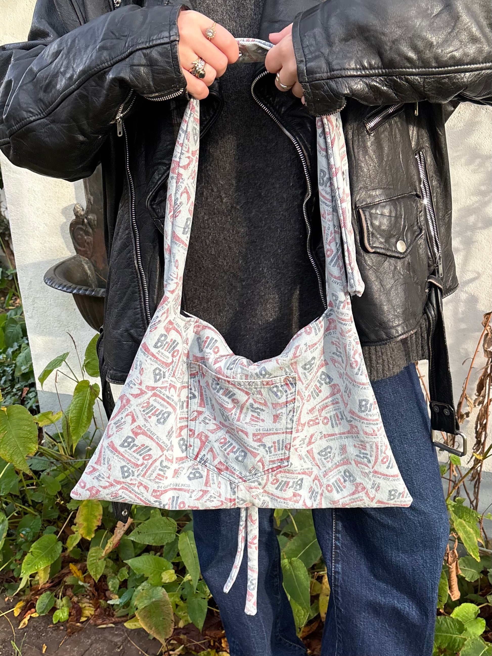 Meet this one-of-a-kind upcycled bag! Fully lined for extra durability. Perfect for carrying your essentials, and it even has a small pocket inside to keep your tiny treasures safe. Unique, practical, and sustainably made—what’s not to love?