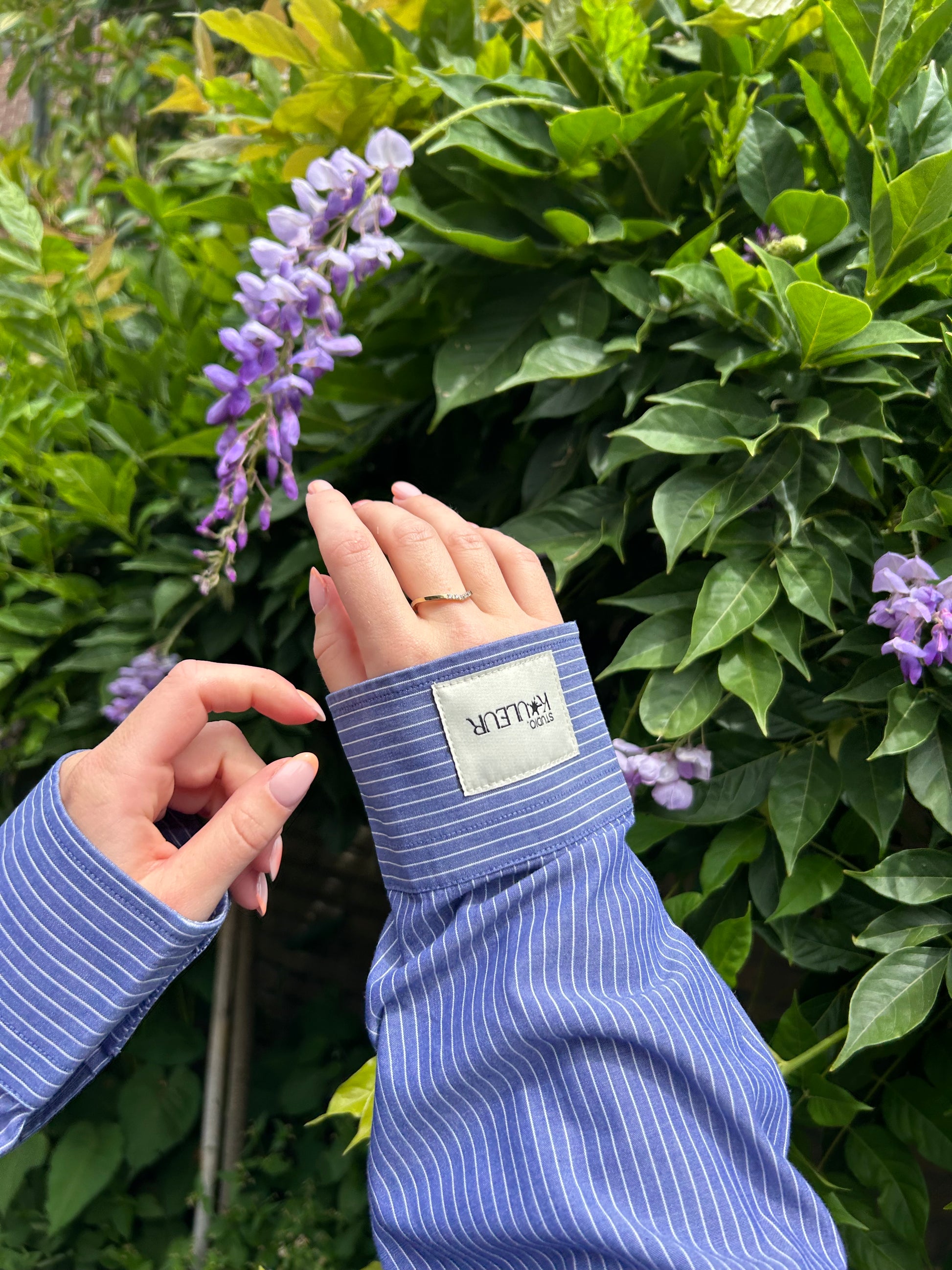 Reworked Blouse With An Adjustable Tight Waist Striped Blue