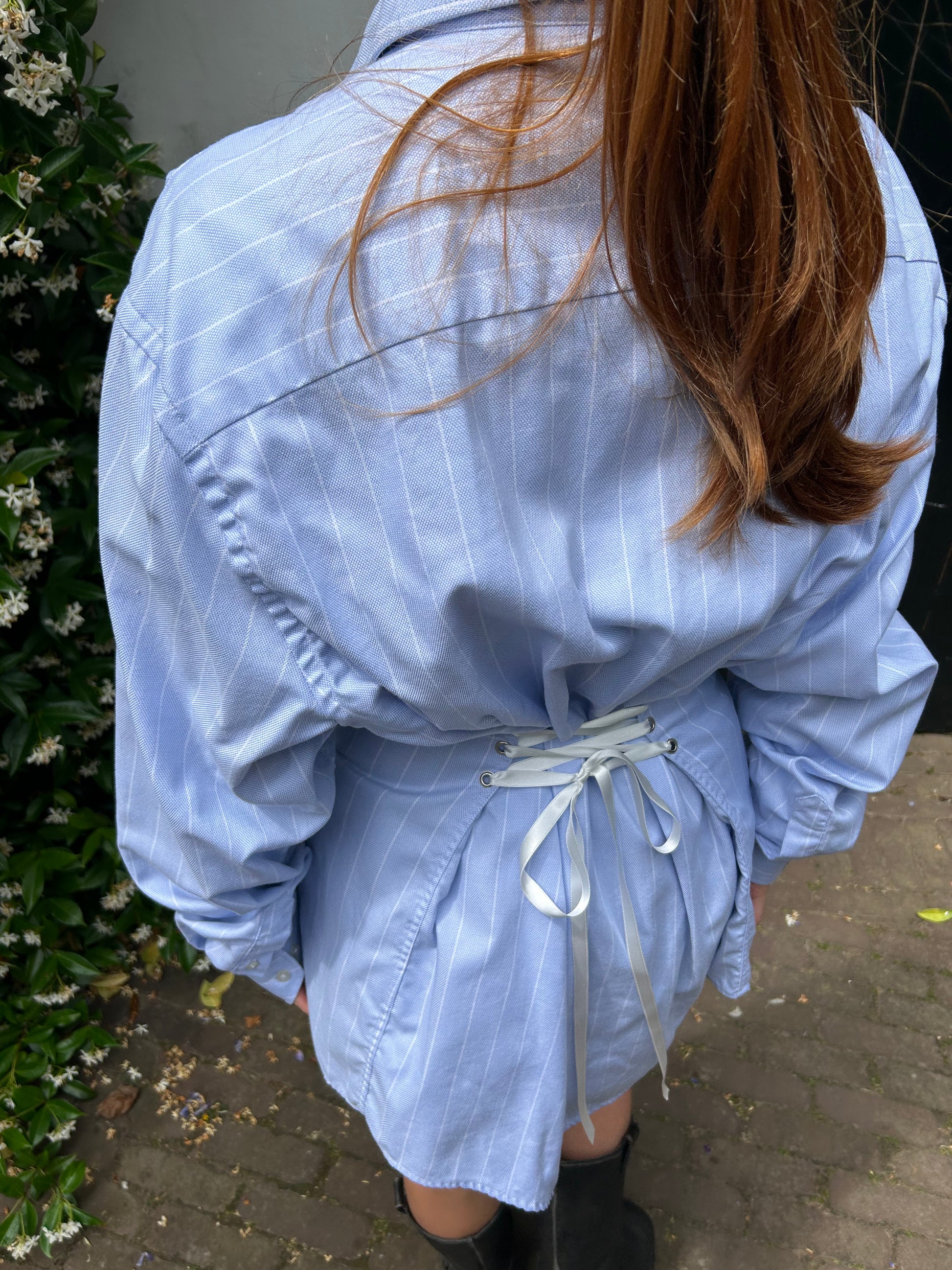 Reworked Blouse With An Adjustable Tight Waist Striped Blue