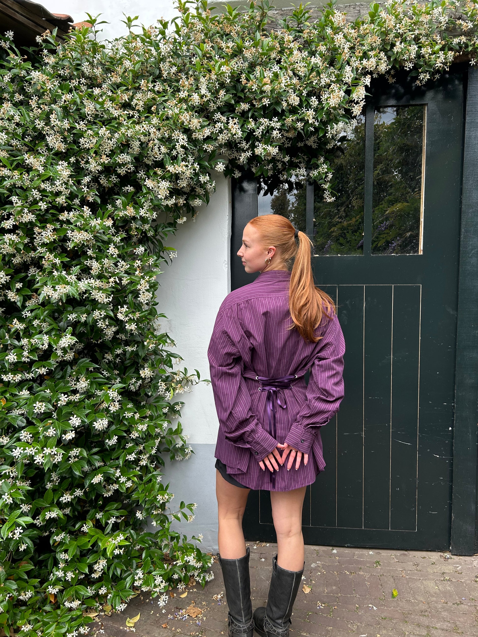 Reworked Blouse With An Adjustable Tight Waist Striped Purple