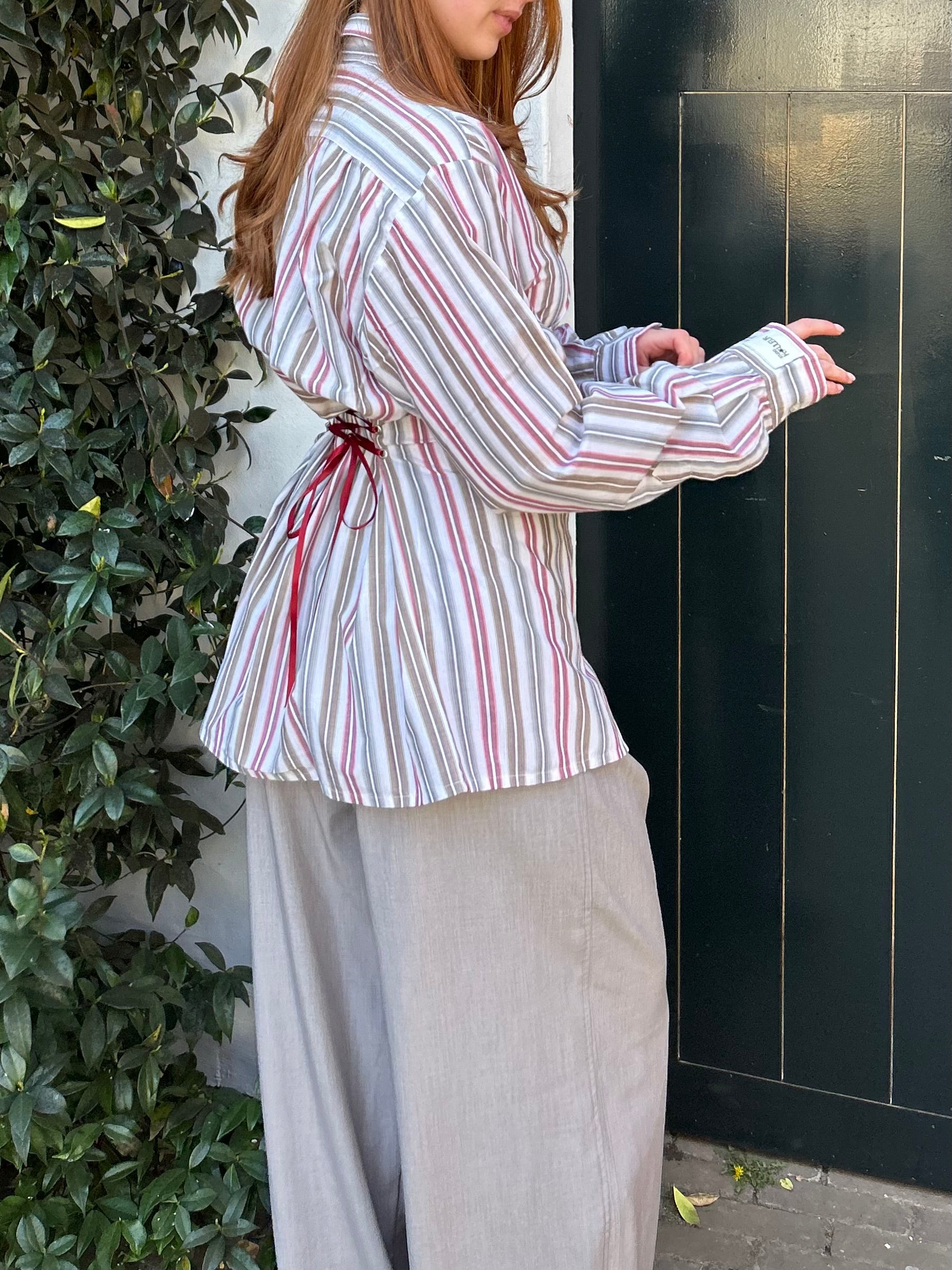 Reworked Blouse With An Adjustable Tight Waist Striped Multi Color
