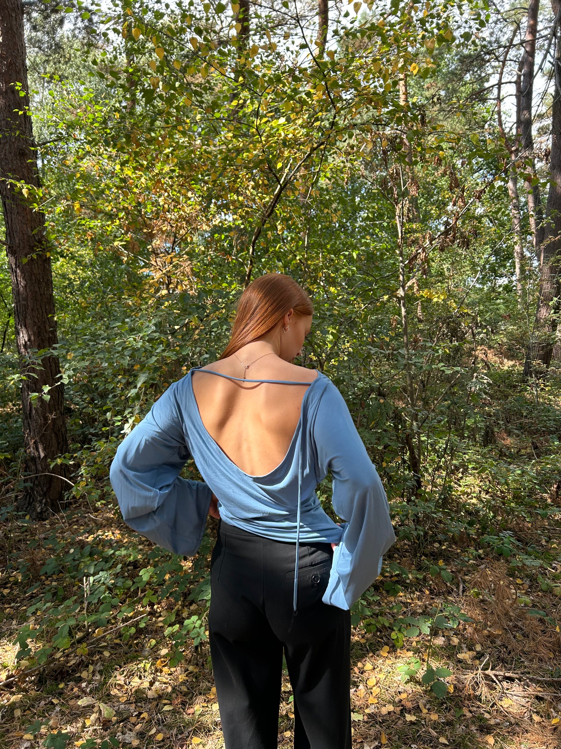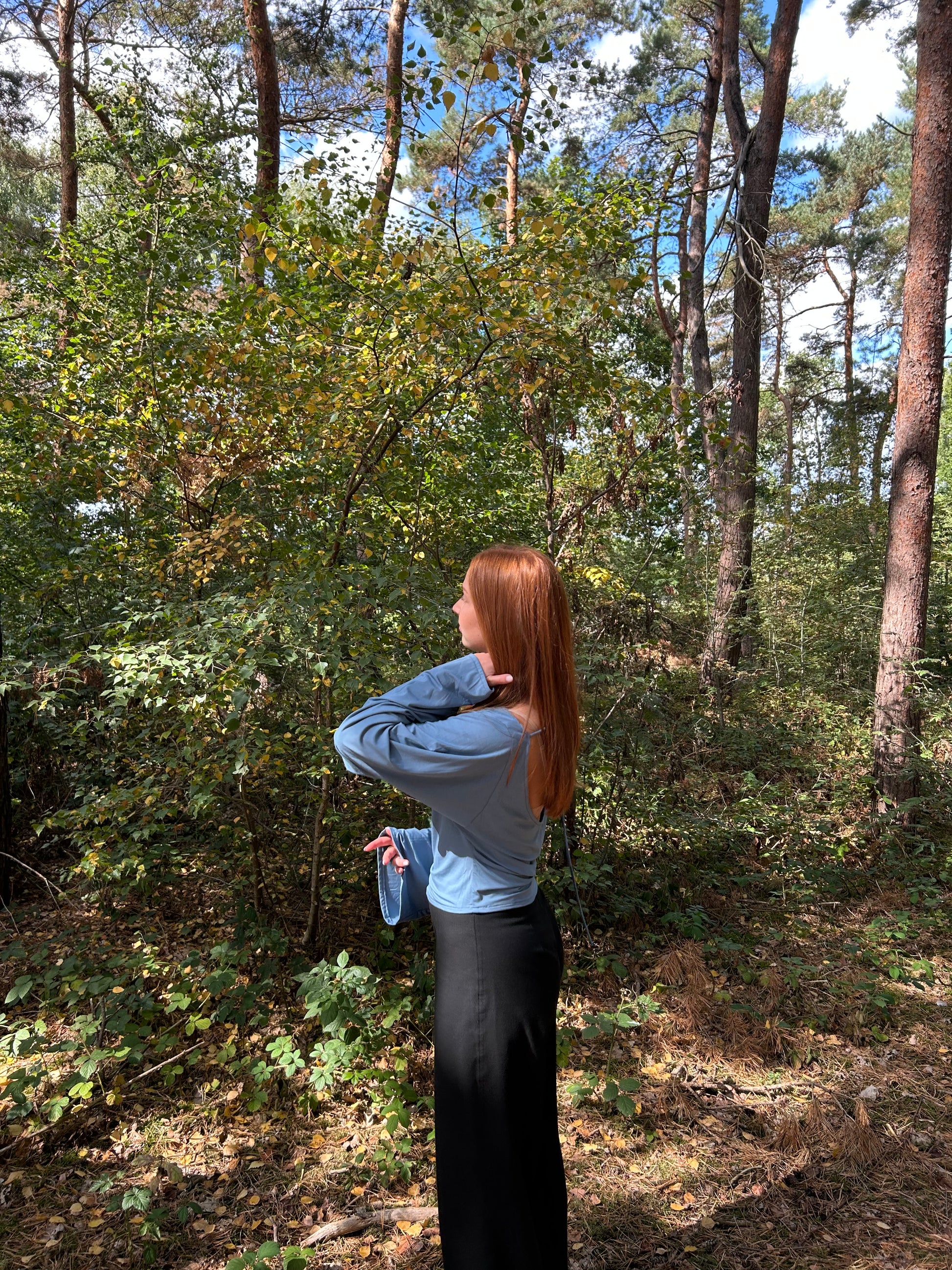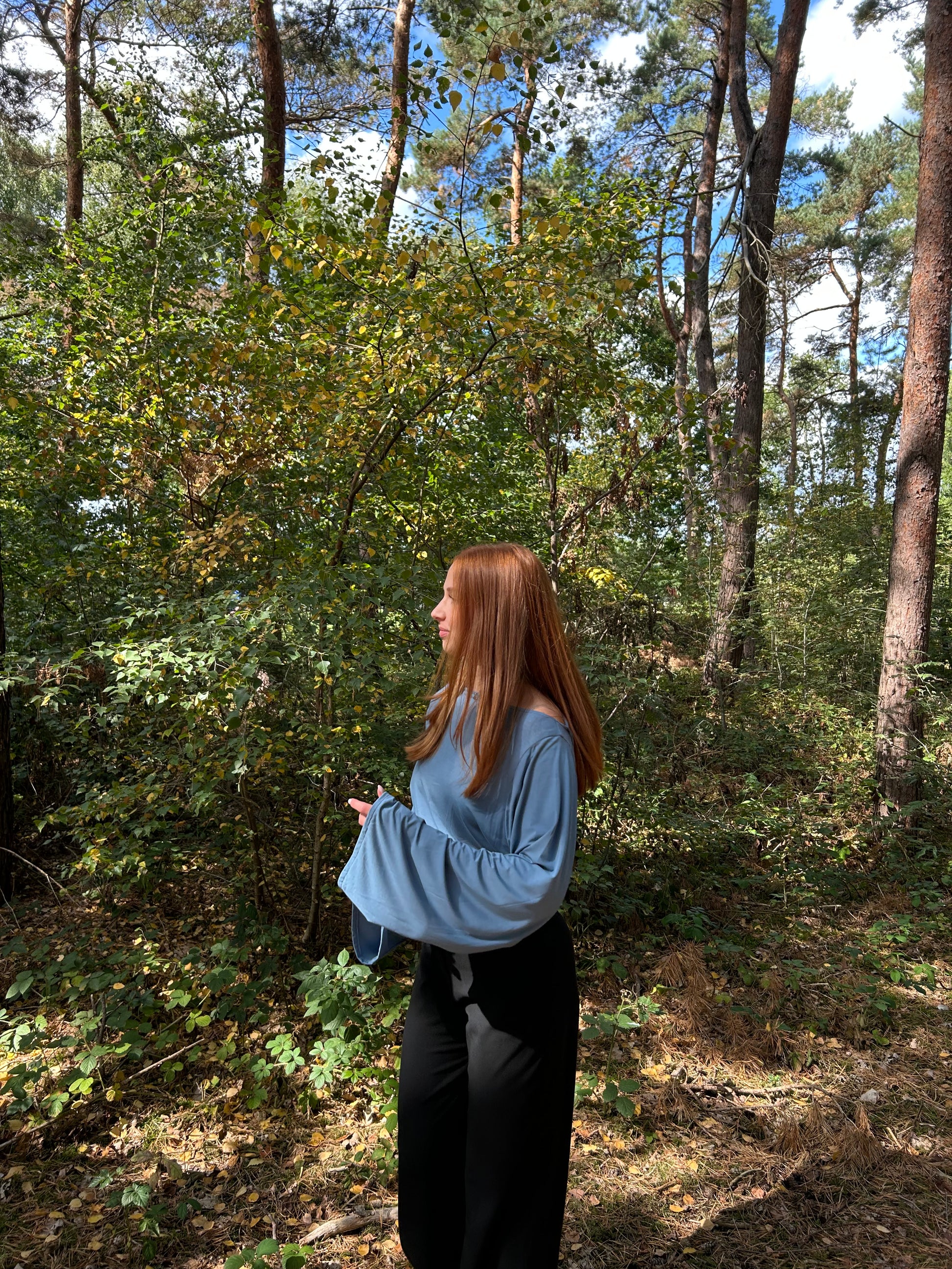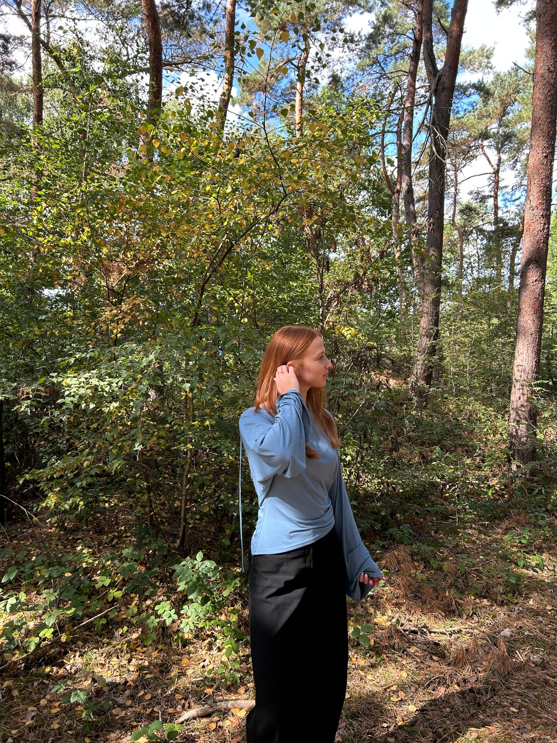 Meet the perfect fall top! Made from a beautiful, breathable bamboo fabric – soft, and sustainable. This piece can be styled in multiple ways—wear it your way! Perfect for the autumn days, dress it up with a lovely skirt or keep it casual by pairing it with a nice pair of pants. Evy is wearing a size XS/S (her waist is 68 cm ). The fabric contains stretch.
